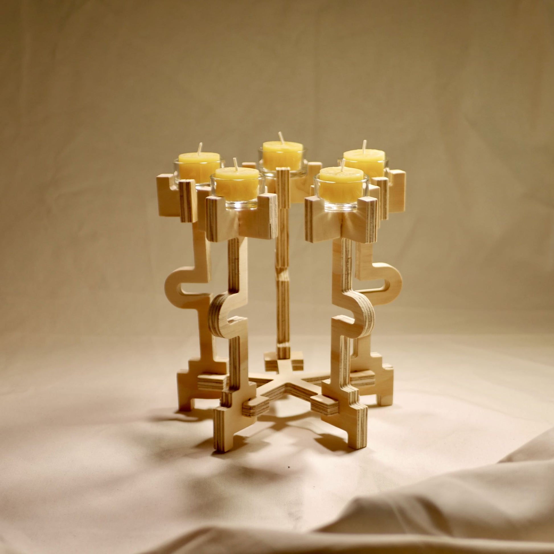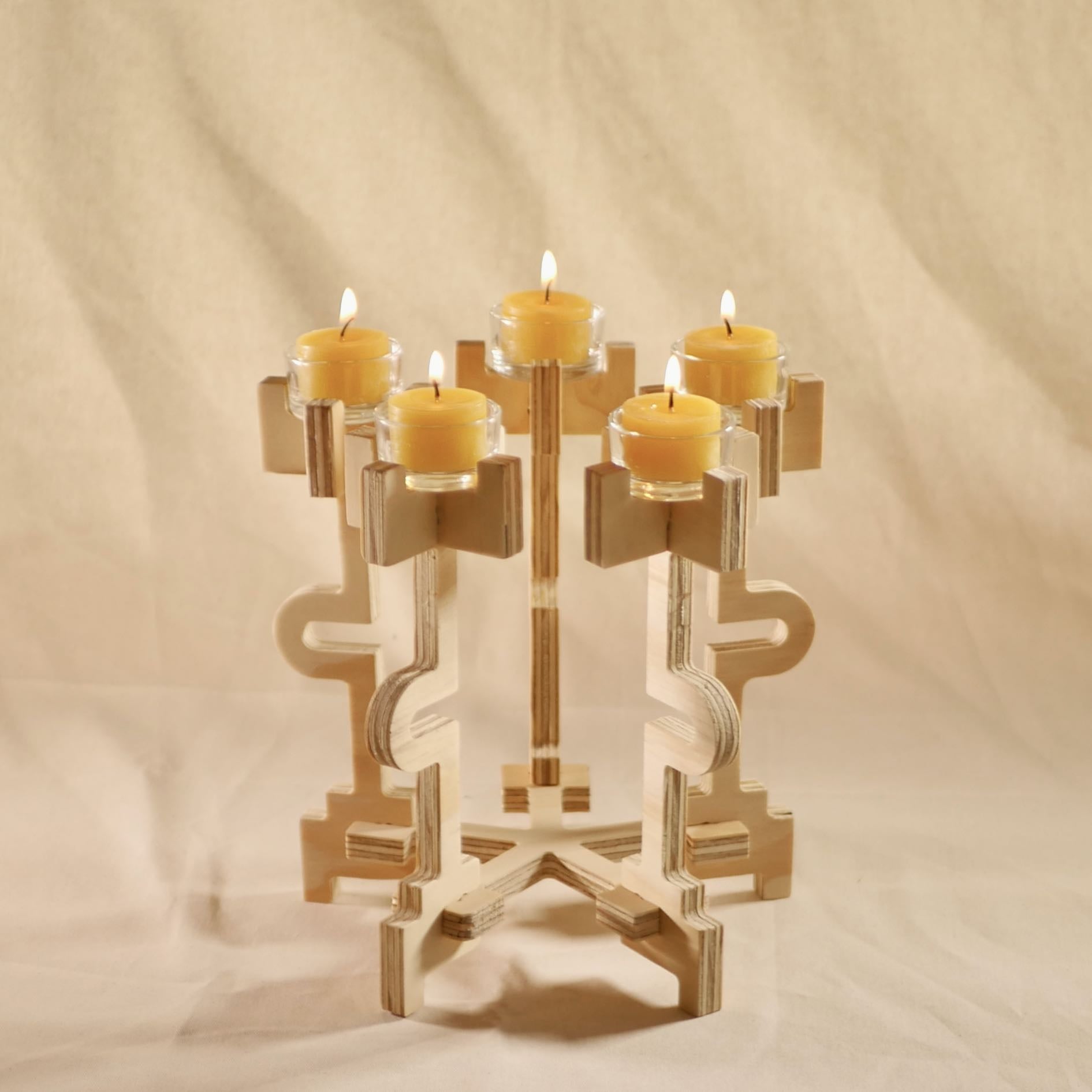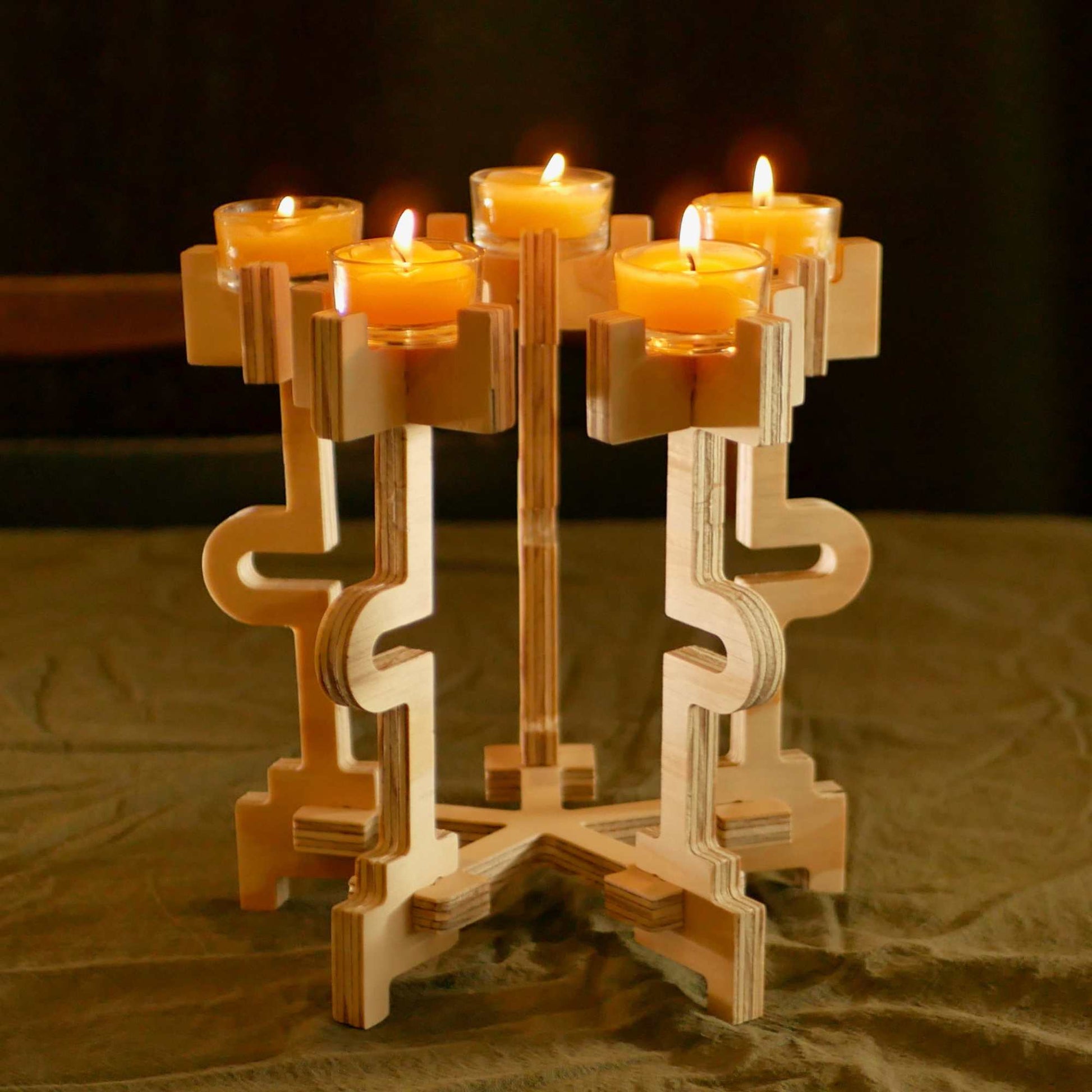 Crafted from 12mm West Coast plywood and made entirely in New Zealand, this quintuple candelabra is the statement piece of the range. CNC-cut in Christchurch, hand-finished in the workshop, and designed to cast a wide, gentle glow across a larger room.
