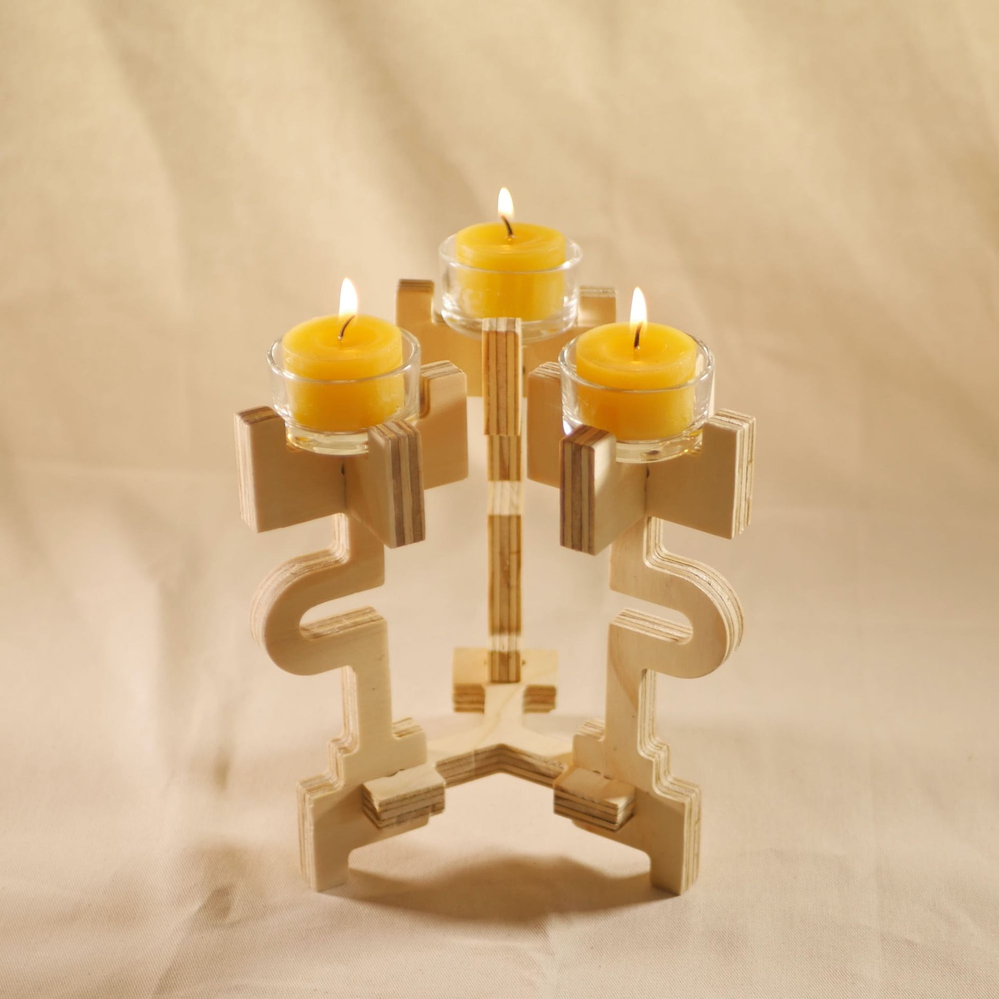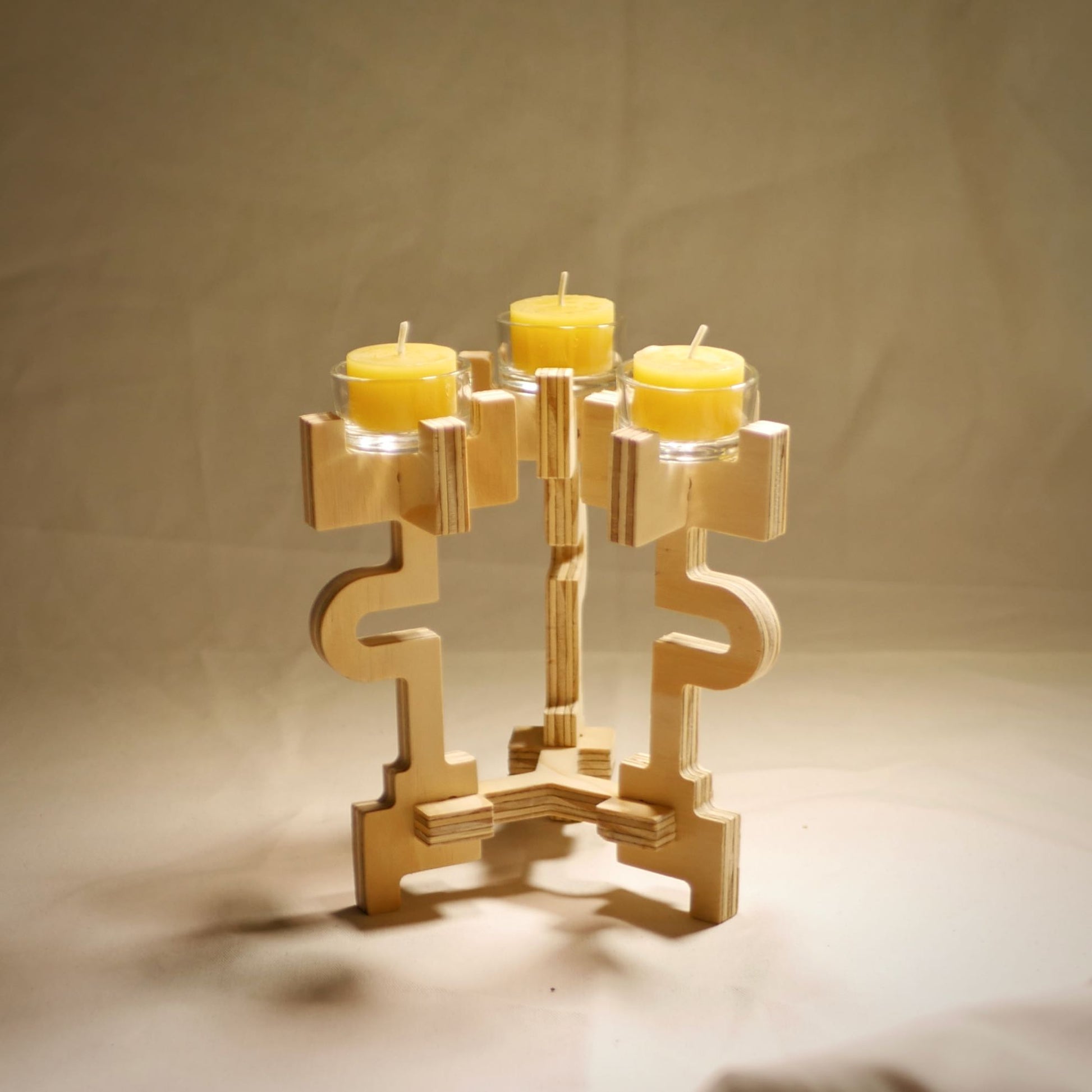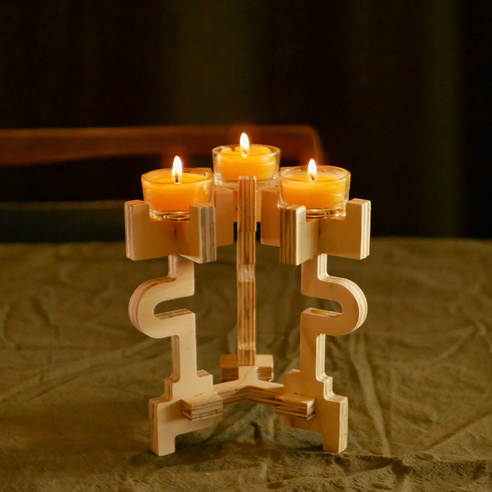 Made from 12mm West Coast plywood and crafted entirely in New Zealand, this triple tealight candelabra brings warmth and presence to any space. Cut on the CNC in Christchurch and hand-finished with care, it’s designed to feel calm, grounded, and effortlessly elegant.